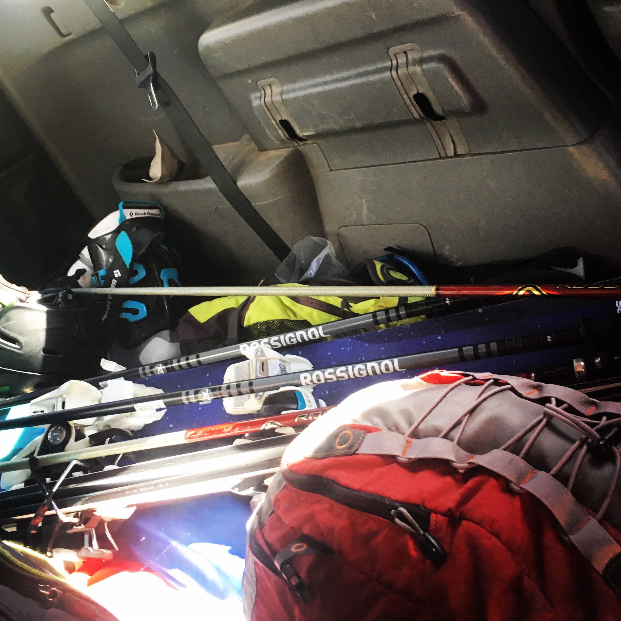After a couple of those bad boys, I went back out and had a great afternoon tooling around on the skis! It helped that the sun tried to sneak out for a second and we could see way better. And that the snow softened up just a little.