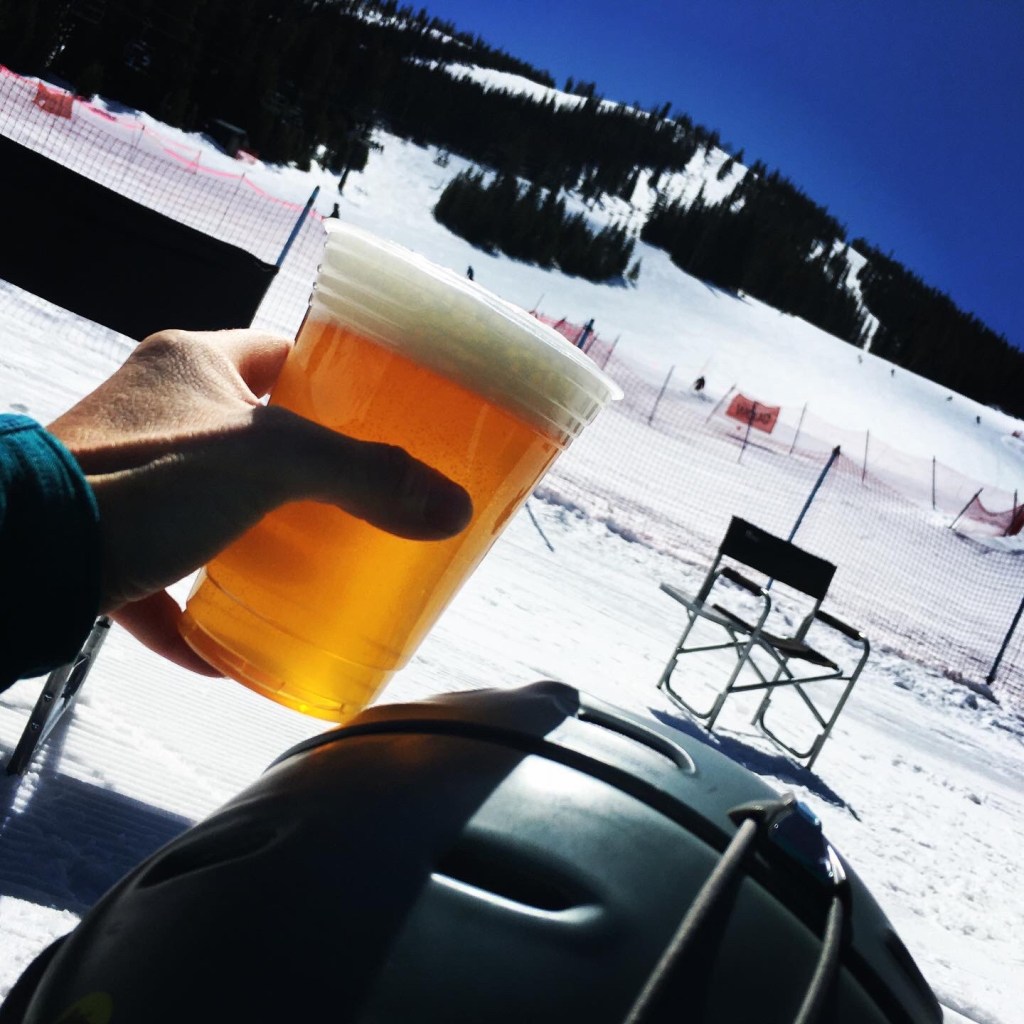 Monday was glorious spring skiing. I probably did more runs that day than the rest of the season combined. I even voluntarily went in the bumps! And we got to sit outside, take off our ski jackets, and enjoy a beer outside! SO nice!