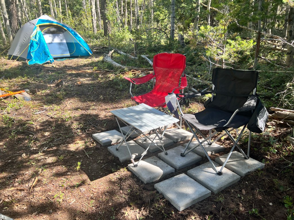 We carved a path from the road to our tent pad, and set up our camp kitchen in a little nook. We cut a million branches so they didn’t scrape our faces. We slept well that night.