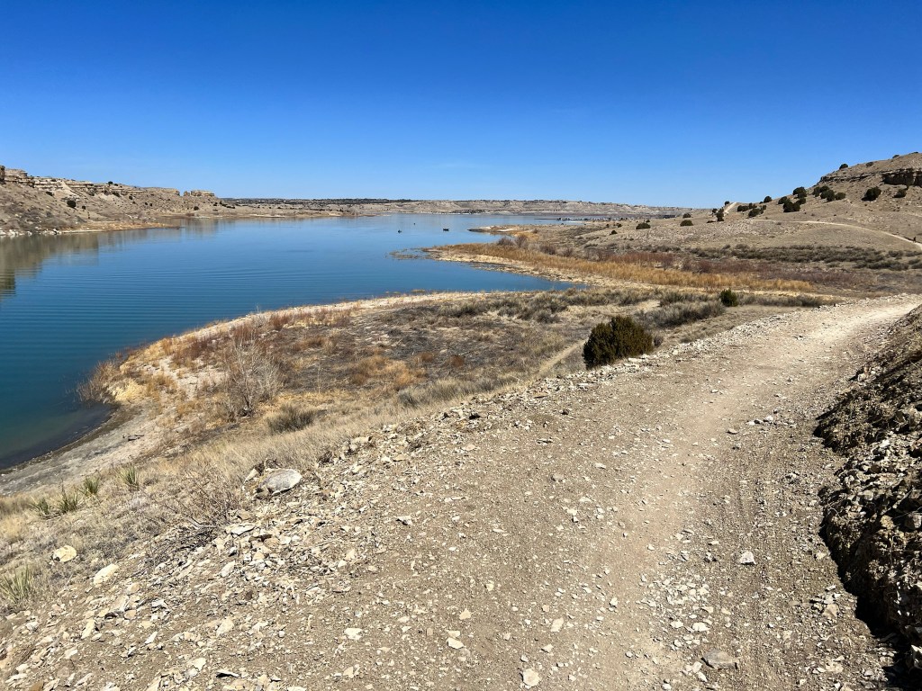 The bike shop is closed on Easter Sunday. When I realized that (again – somehow I forget EVERY year!), I asked Matt to take an afternoon off so we could go somewhere different. We wanted to go somewhere new, but not really far away, that had cool stuff for us to run and ride, but also to do together. We’d heard really good things about Lake Pueblo State Park from one of our friends, and I had no trouble reserving a camping spot near the lake itself.