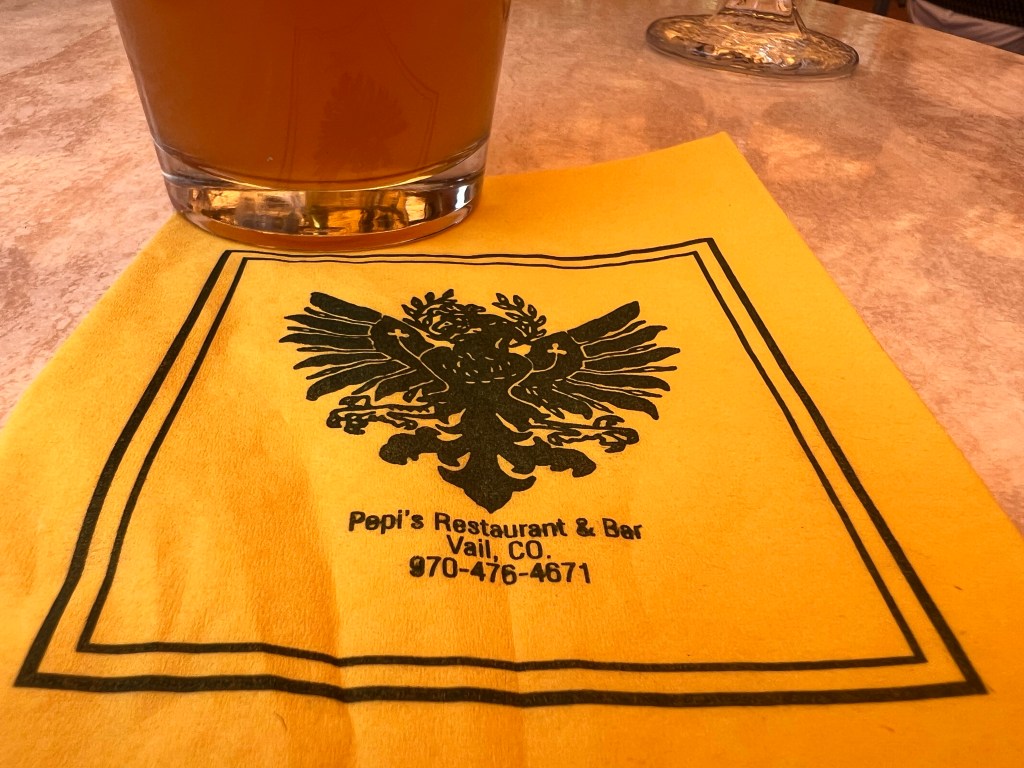 At the bottom, we headed back to Vail Village and found a late lunch. We ended up at Pepi’s, a German restaurant where we had a hamburger and a reuben. At least we had German beer, a hefeweizen for me and a pilsner for Matt.