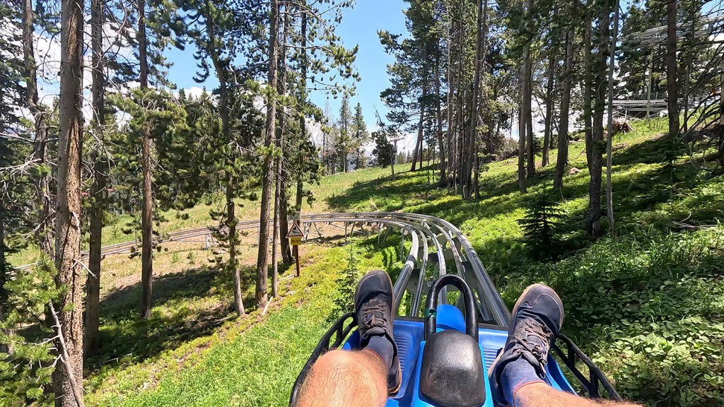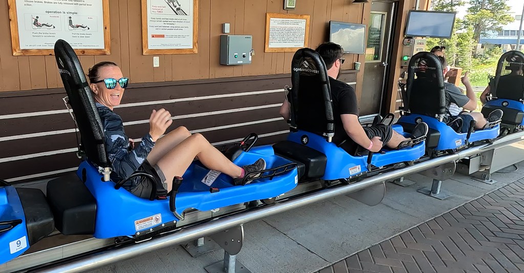 When we got back to the top of the gondola, we headed for the other side of the mountain where the alpine coaster was. After getting our tickets, we got in line and got ready.