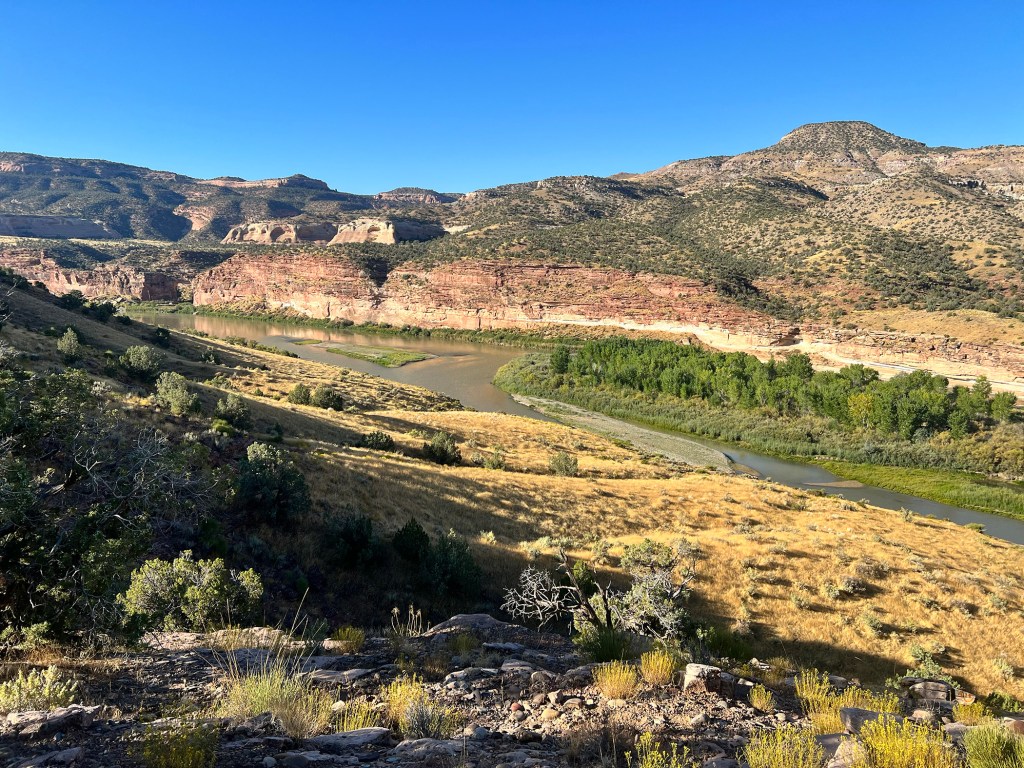 I headed for Dewey Bridge. Good thing, too. When I got there, there were only two (of seven) spots left. I grabbed the one with the most flat space and pitched the tent.