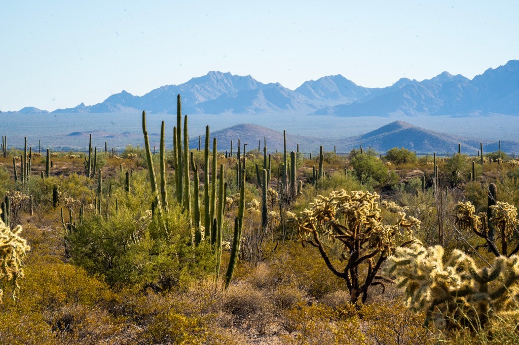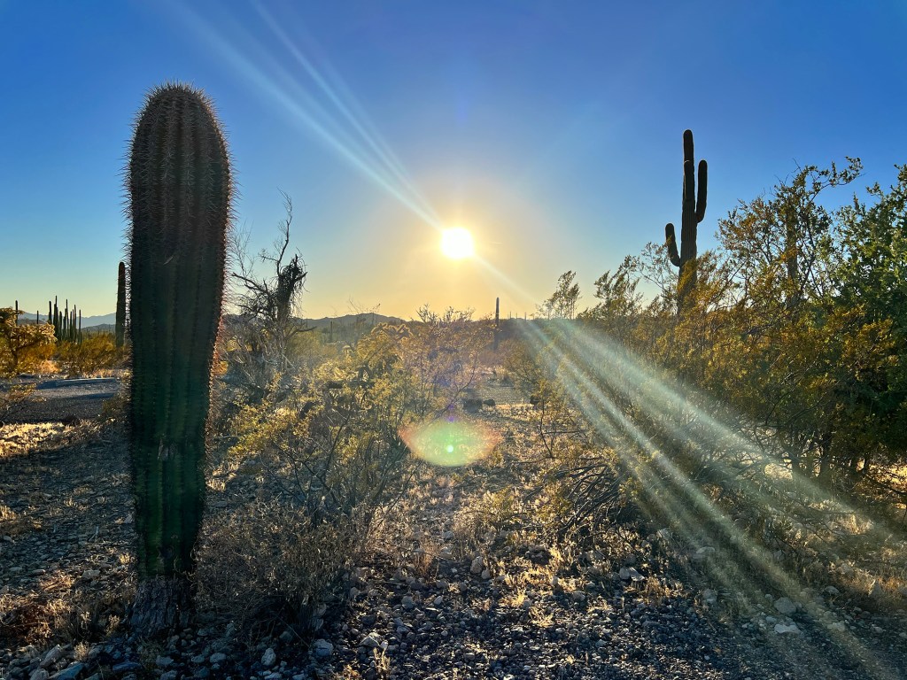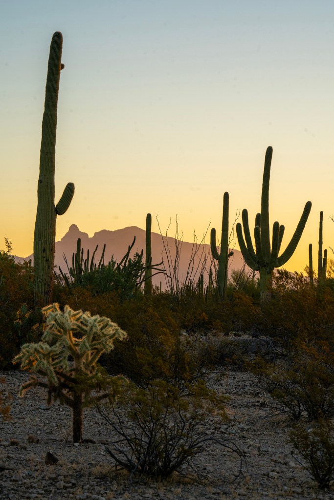 We drove through the mini towns of Ajo and Why. Finally, we got to Organ Pipe Cactus National Monument. We found the campsite we’d reserved and pitched camp.