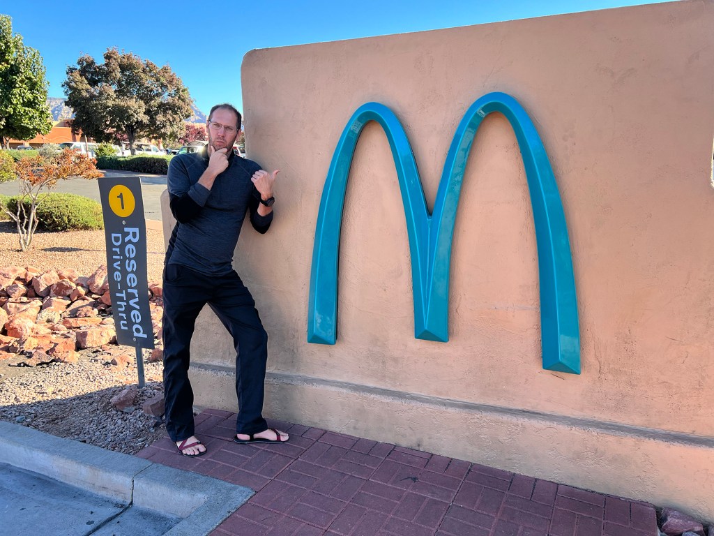 Before we left town, Matt felt obligated to take a picture with the blue McDonald’s “M” in town – and it turned out we weren’t the only ones with the idea! A kid was also getting his picture taken…