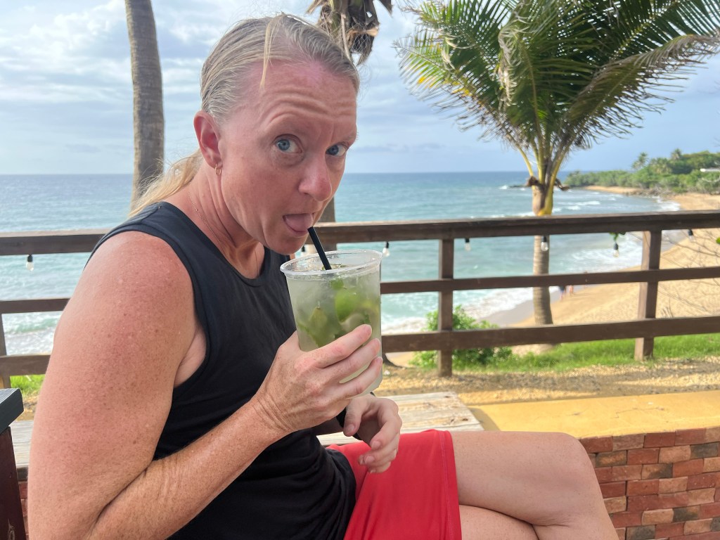 On our way back to town, we stopped at the little shops on the beach and had a drink – pina colada for Matt and a mojito for me – YUM.