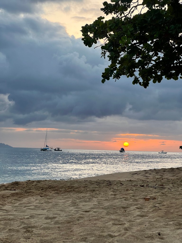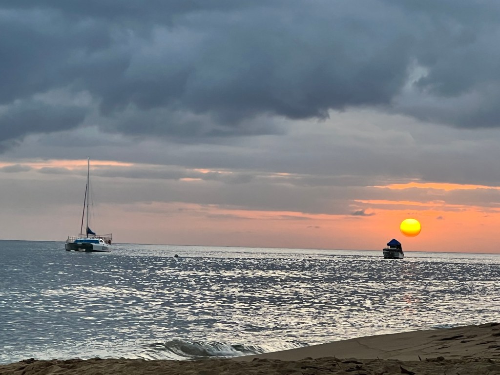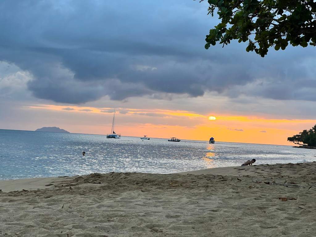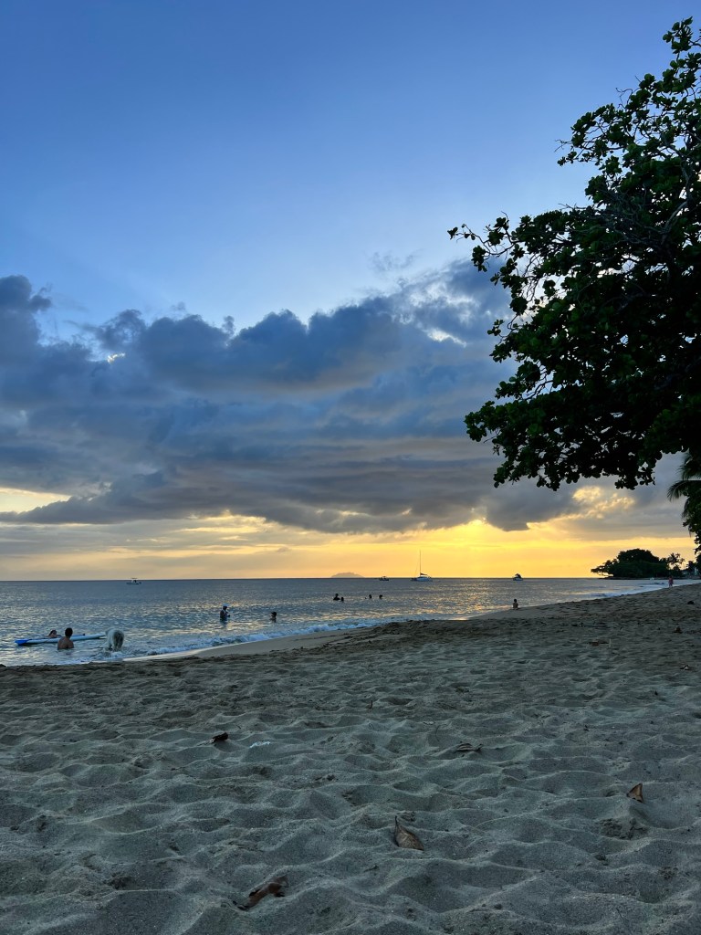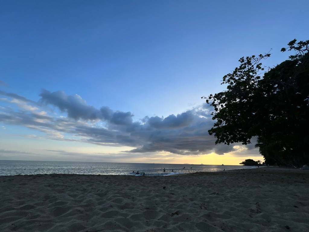 We got back, I attempted to take a shower in the trickle of water that we had (oh yeah, we’re three for three for not having water in PR), managed to cool off at least, then went to the beach in town for sunset.
