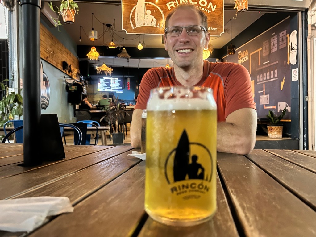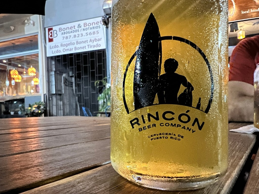 Gorgeous, as usual. Then we had a beer at the little place on the beach, and my sorry ass didn’t want to go back yet, so we stopped in town at the Rincón Beer Co. and had another beer. Then back to pack up and go to bed. Tomorrow, we head to San Juan.