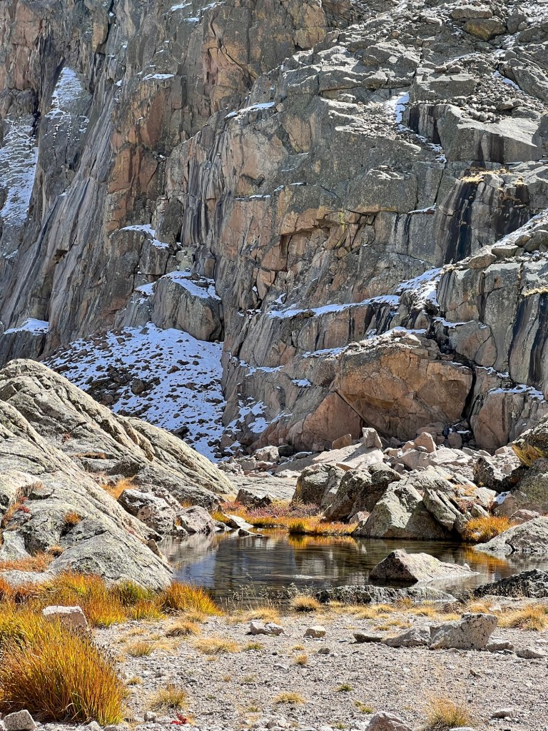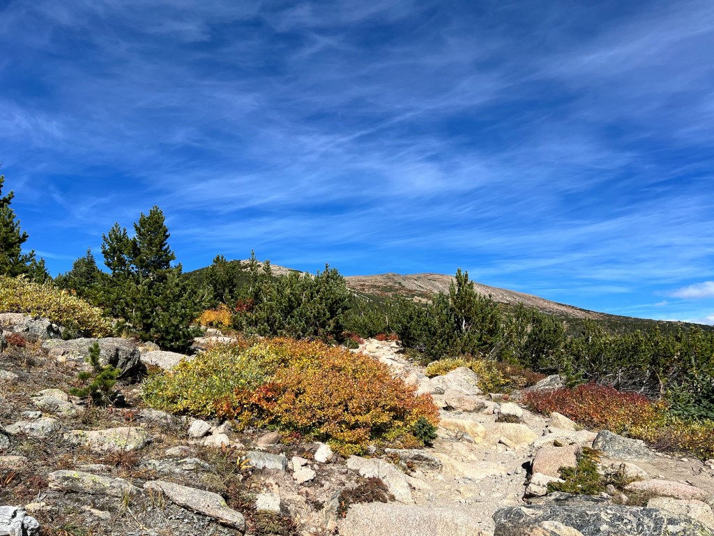 The trail at first was nice and wooded, with beautiful little streams flowing next to it. As we got higher, the trees thinned out and we got to experience fall in all its glory in the high country.