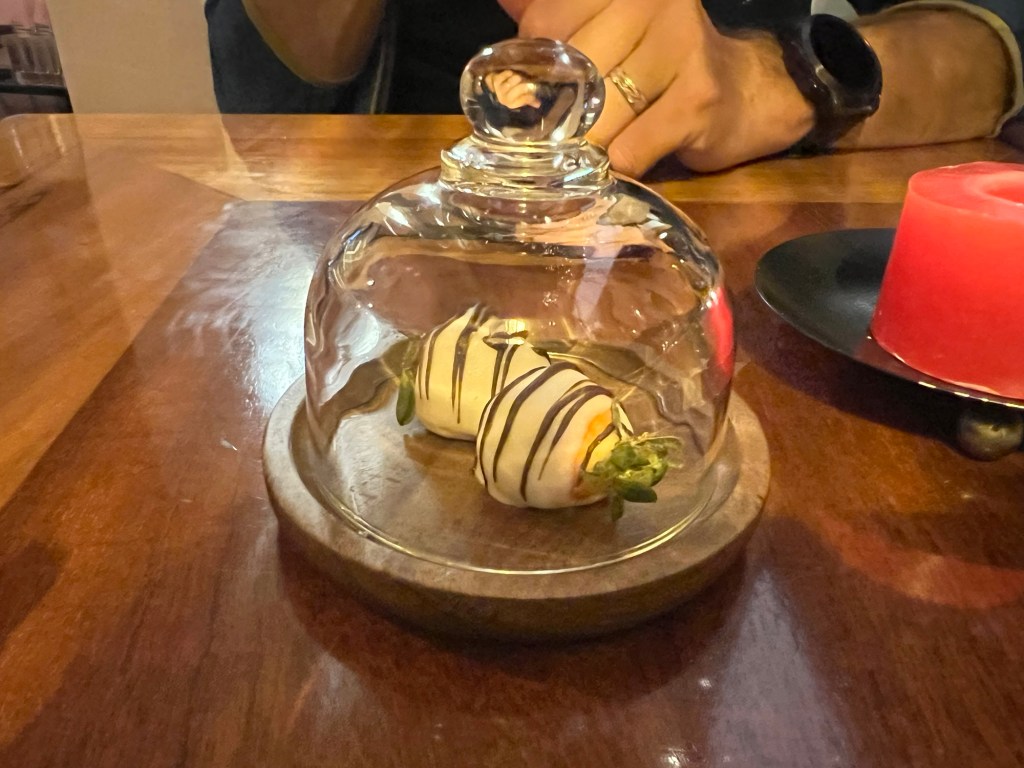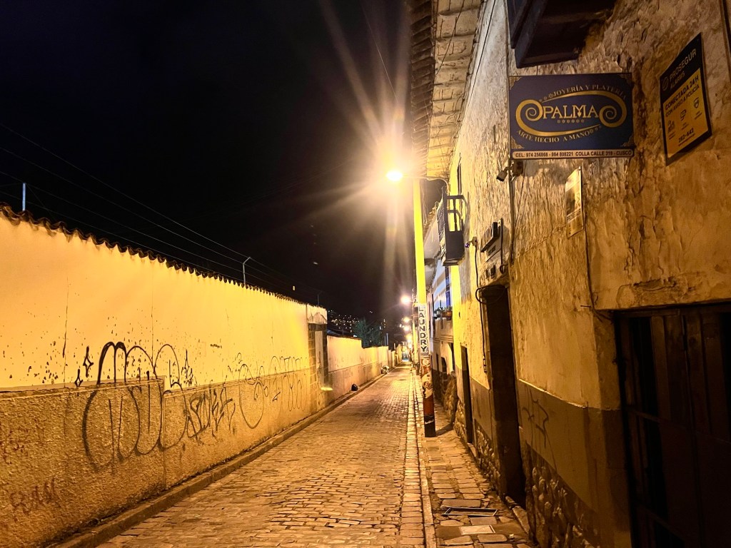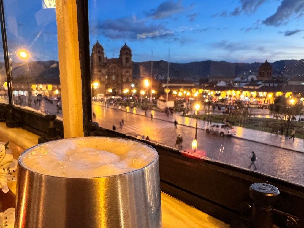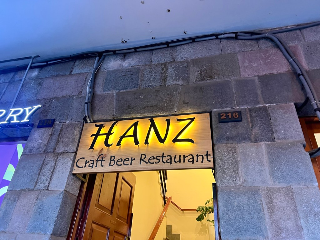 We went to dinner at Hanz Gastronomique, a place I’d found on TripAdvisor, located right on the Plaza de Armas. Good lord. This is the trip of the holy SHIT’s. The beer was awesome, the food was incredible, they actually included filtered water, and several little details like a piece of fried octopus that was awesome and chocolate covered strawberries after we’d already had dessert. All in all, an amazing dinner experience.