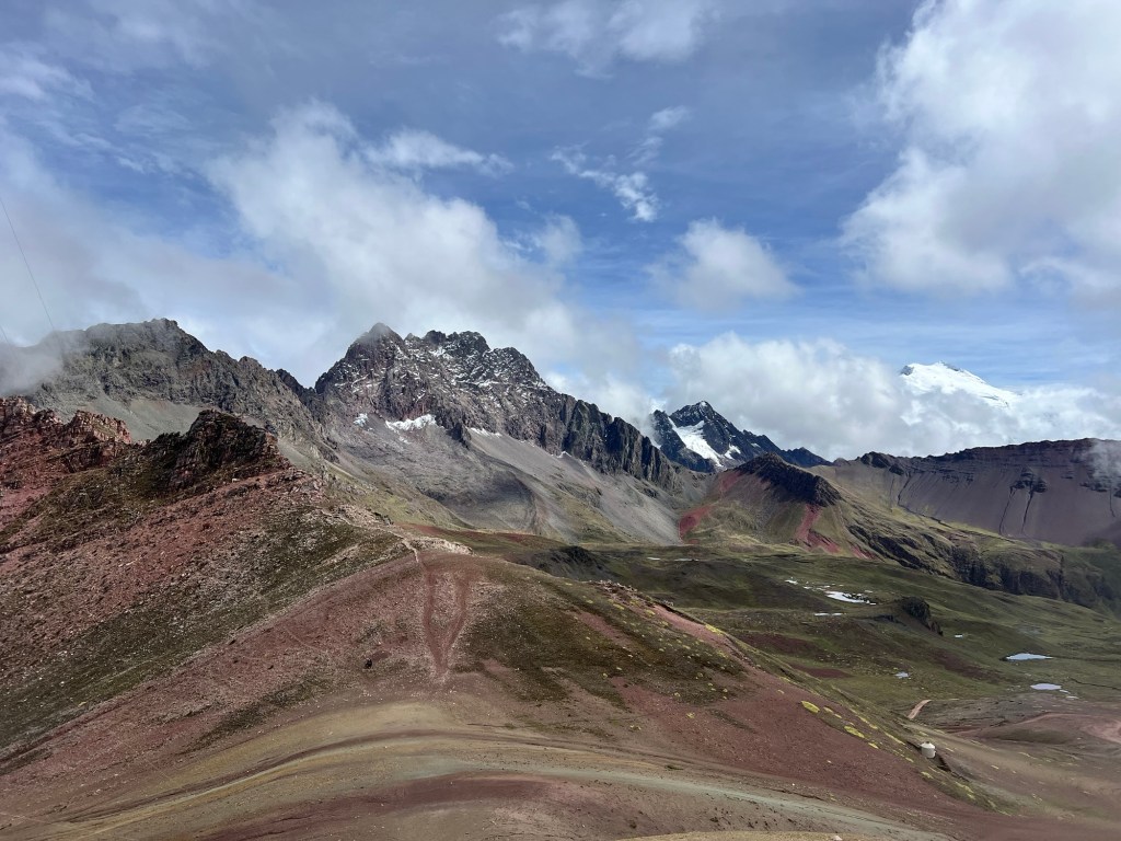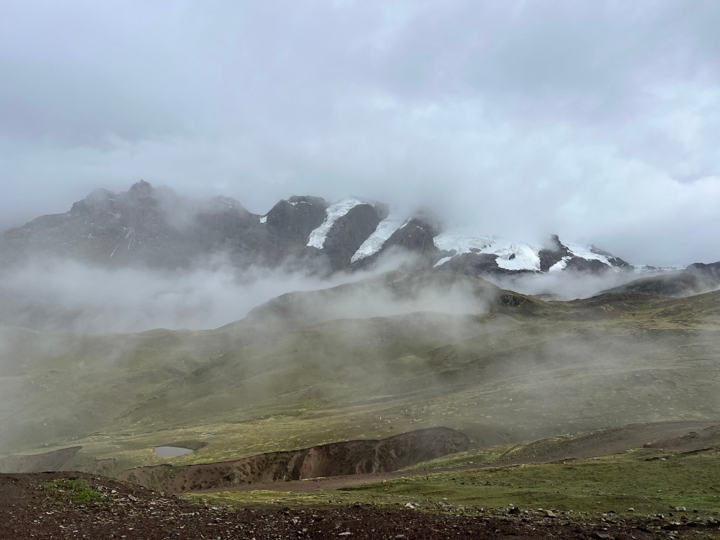 The views. Oh my GOD, the views. Fucking incredible. From the top of the mountain, we could see the next few ridges behind the one we were on, including the peak with the largest glacier in Peru. And the way the clouds swirled in and out, slowly revealing and hiding the landscape, was amazing also.