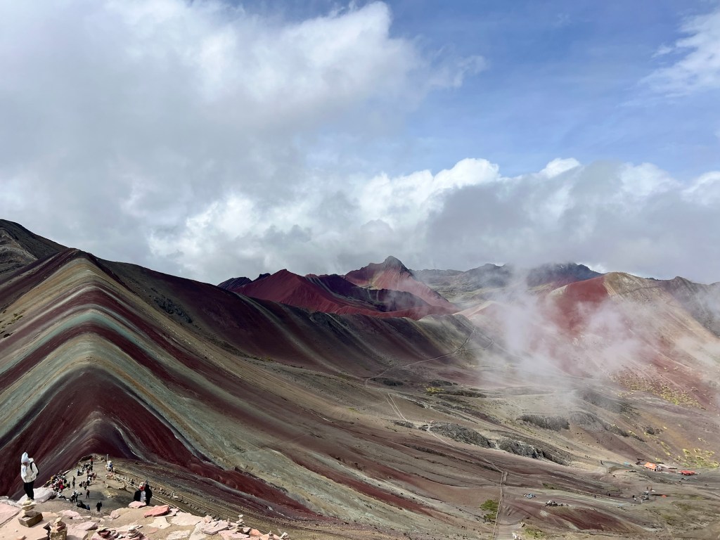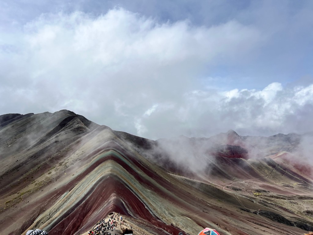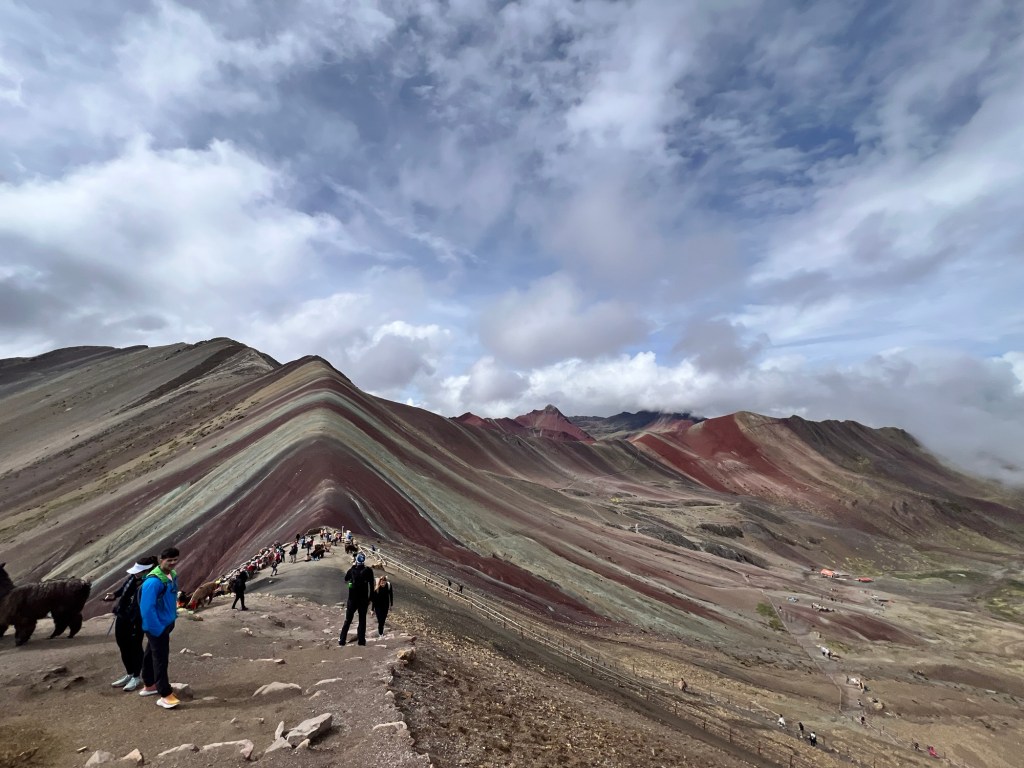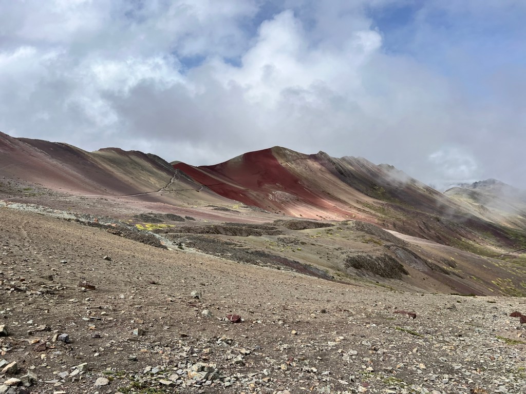 We made our way up and up, on ridiculously gentle grades that just were NOT that hard. Eventually, we got to the “hard” part – which was not really very long at all, even if they did call it the “gringo killer.” We got to the top of the saddle, and there was Rainbow Mountain in all its glory.