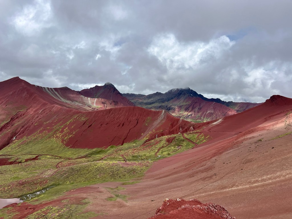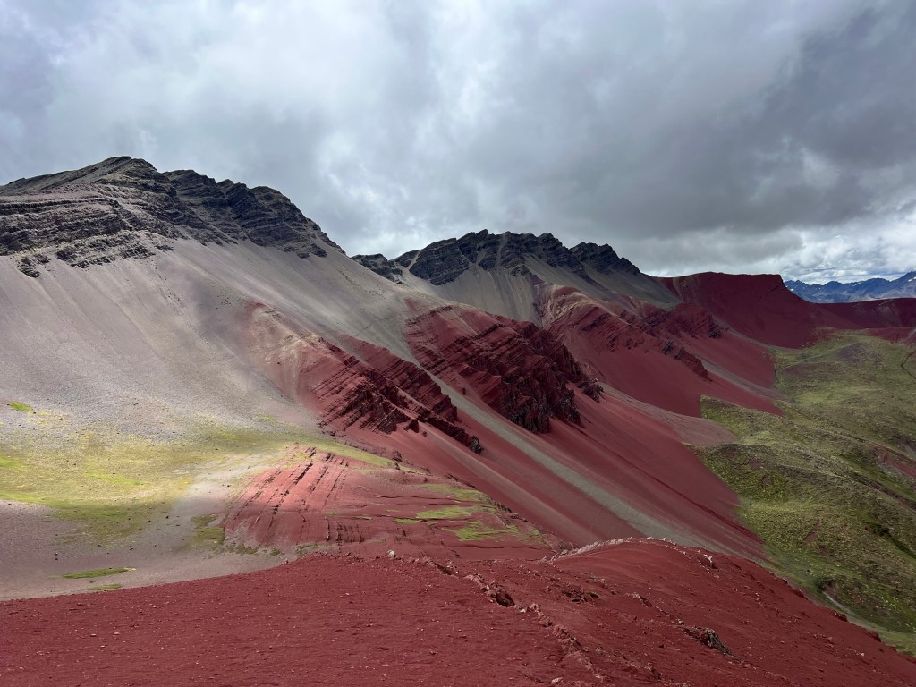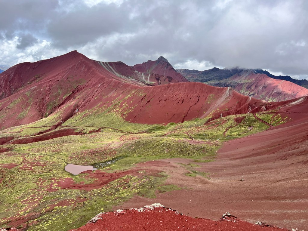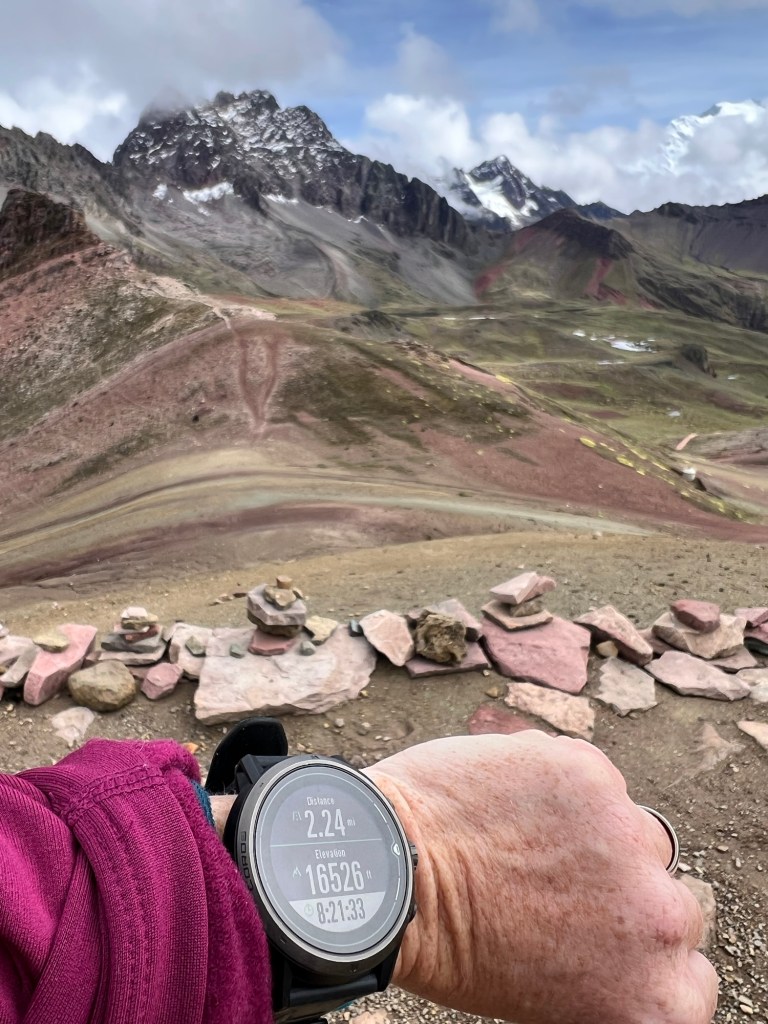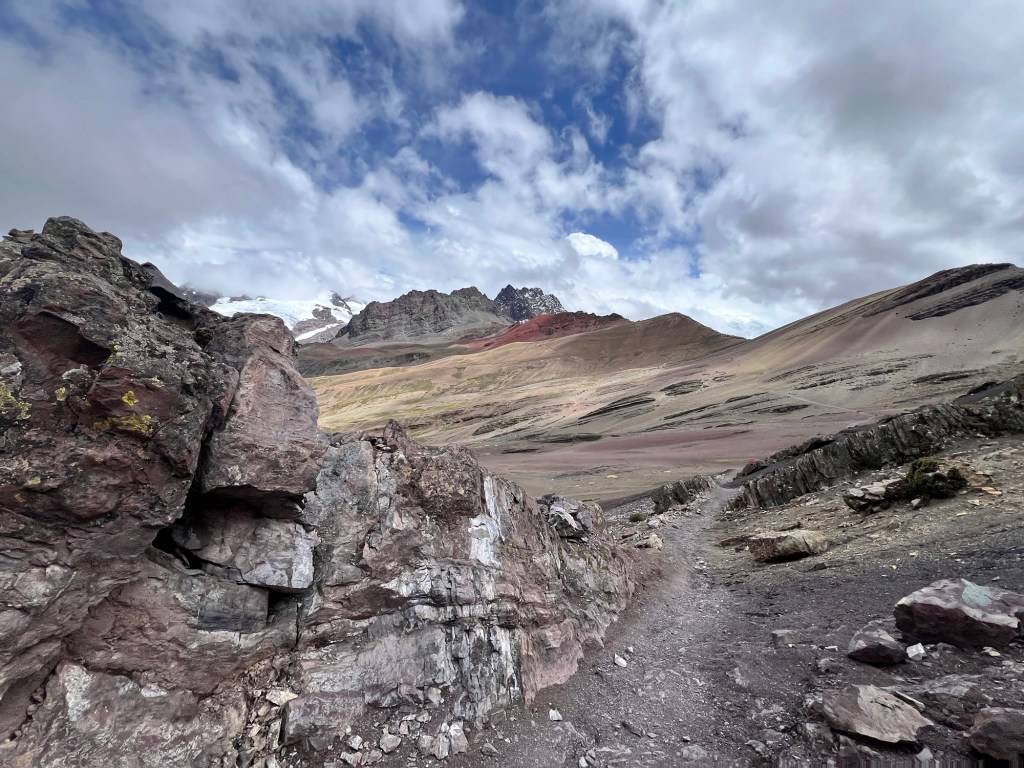 We made our way up and up, on ridiculously gentle grades that just were NOT that hard. Eventually, we got to the “hard” part – which was not really very long at all, even if they did call it the “gringo killer.” We got to the top of the saddle, and there was Rainbow Mountain in all its glory.