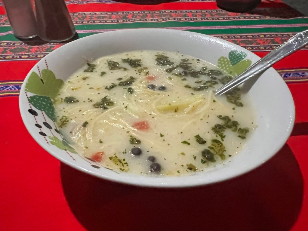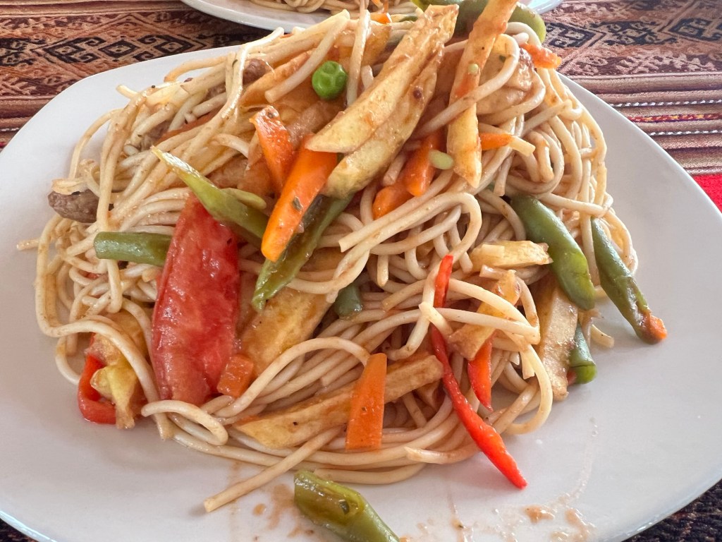 After our swim came lunch, some spaghetti thing with vegetables and bits of alpaca in it. It wasn’t bad, but yesterday’s lunch was better.