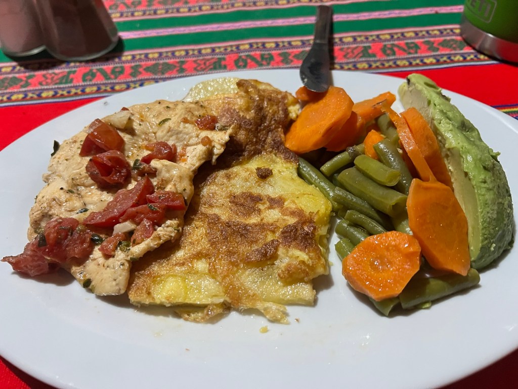 After we crossed the river, we only had a little longer to go until we got to the hostel (Posada Gloria) where we were having lunch. Guacamole, soup, and alpaca lomo saltado was one of the better meals we’ve had. And luckily, since we were doing the three day trek, this was our stopping point for the day. Our room was nice, with a comfy bed, a private bathroom with a shower, and an electrical outlet where we could recharge all our cameras.