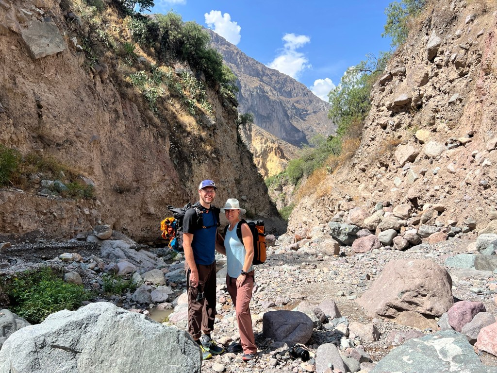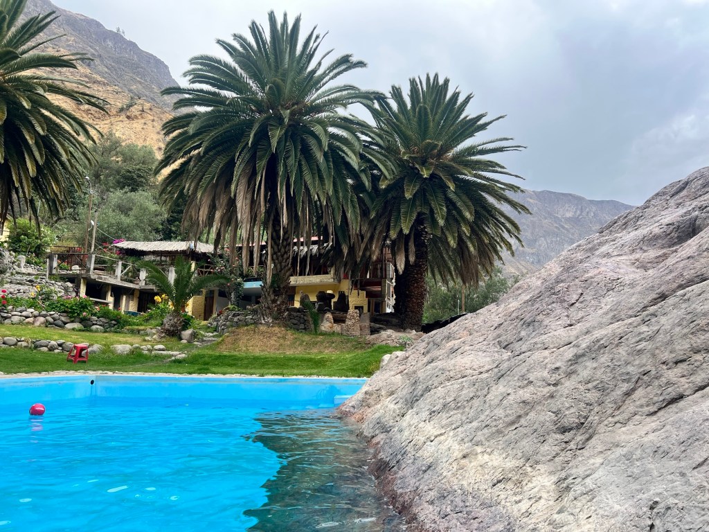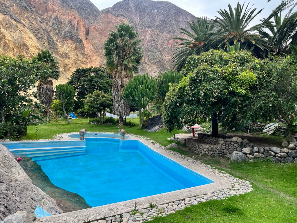 Today’s hike was pretty uneventful, just meandering our way down the canyon a ways to the oasis (actually called Paraiso Las Palmeras Lodge), our stop for this evening. The whole hike only took about two and a half hours, which put us at the oasis by about 11:00. Lunch wasn’t til 1:00, so we decided to take advantage of the spring fed swimming pool for a bit, especially since there was no running water from a blocked canal or something and dunking ourselves in water at least washed the sweat off. It wouldn’t be a trip for us if we didn’t go at least one night without running water.