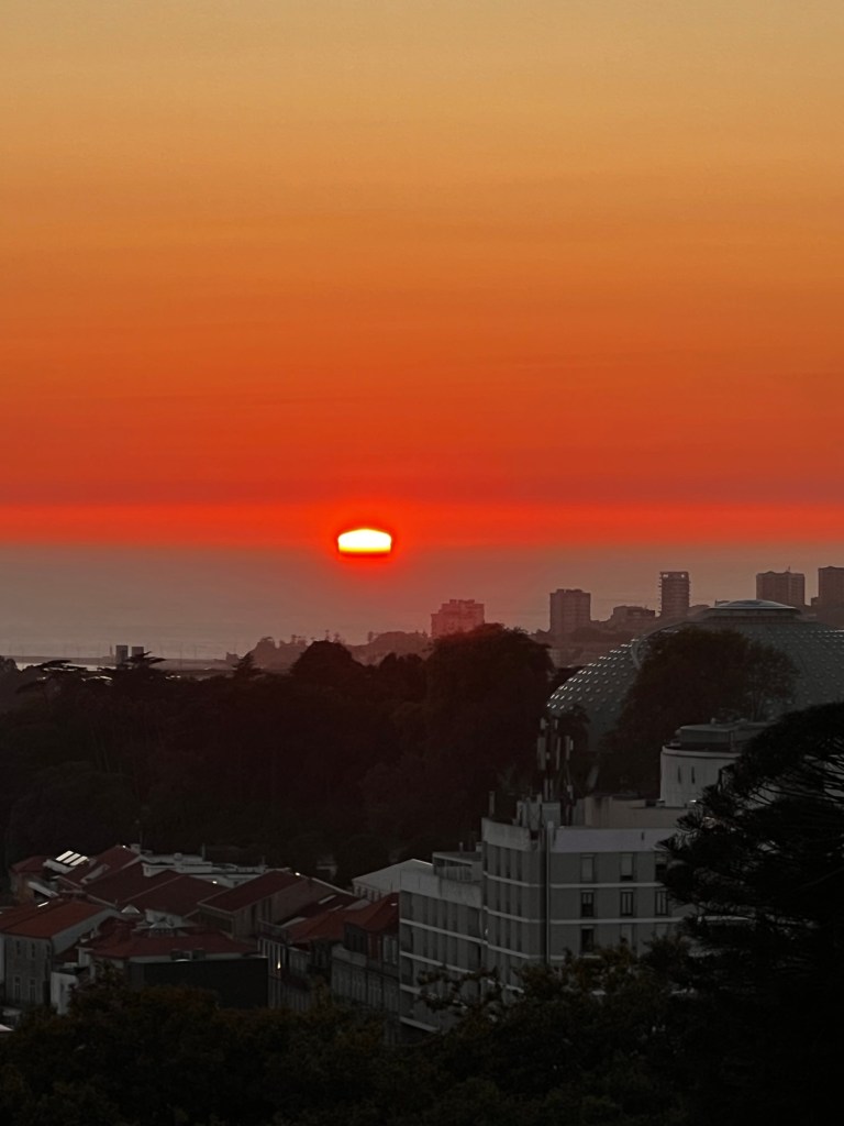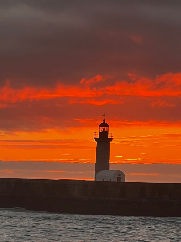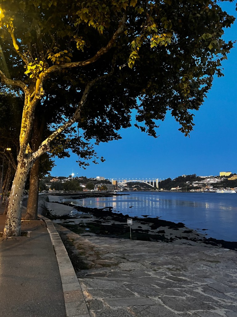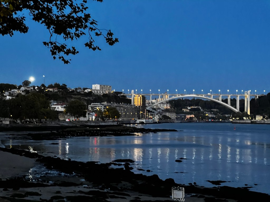 We threw down our stuff, changed clothes, and headed out to wander around. The Douro River is right by our hostel, and we have a beautiful view of it from our room. We wandered down to it and walked towards the ocean for a bit. The mouth of the river is right there, and watching it flow into the Atlantic as the sun was setting, drinking our first glasses of Portuguese wine at a little riverside bar was absolutely spectacular.