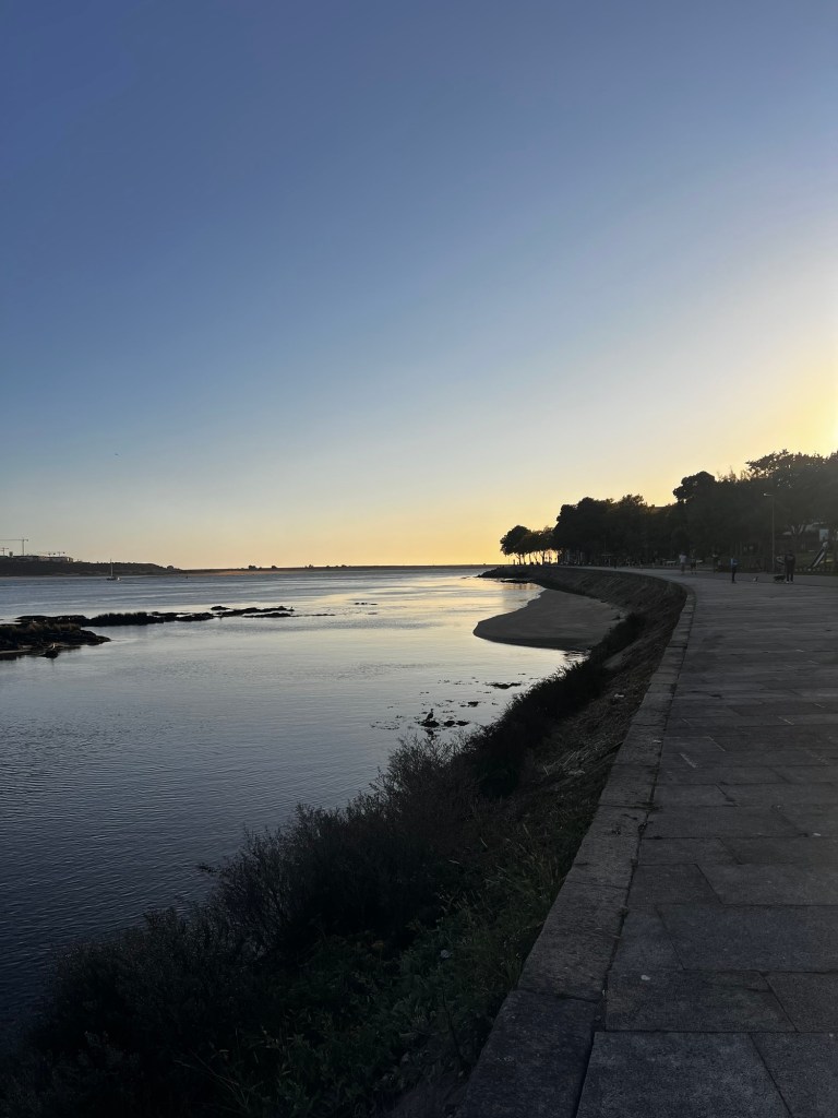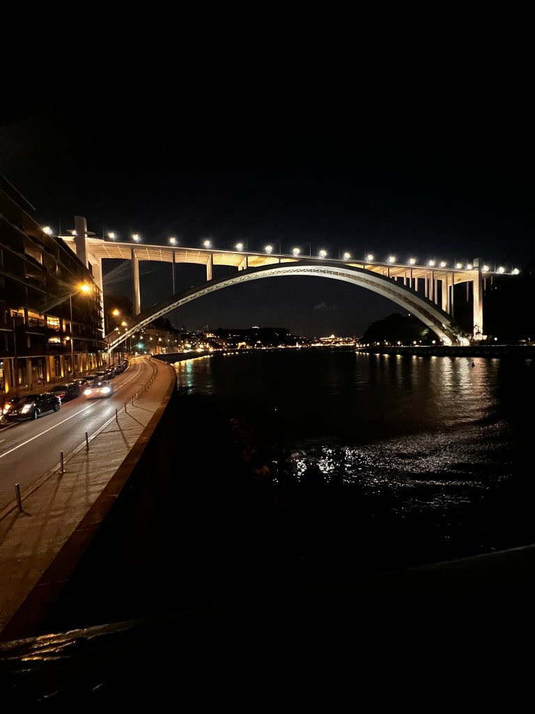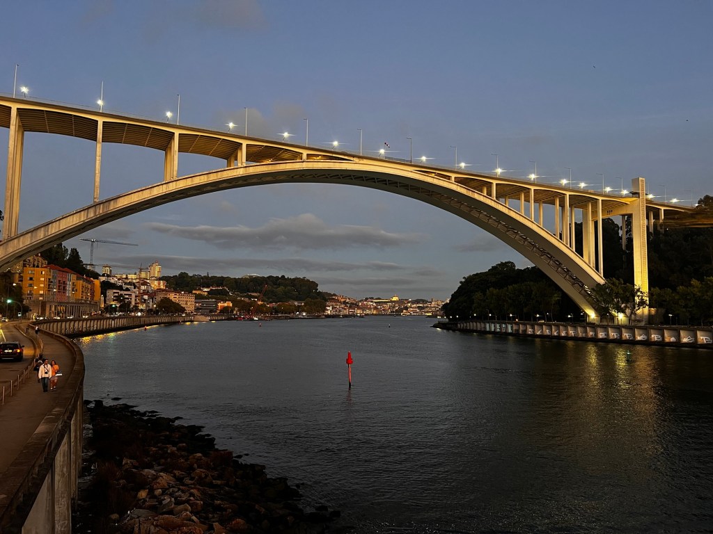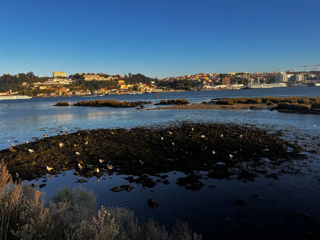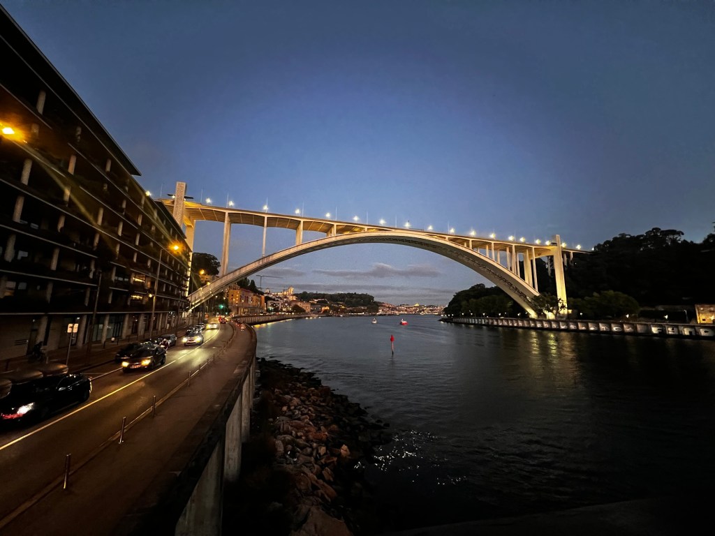 We threw down our stuff, changed clothes, and headed out to wander around. The Douro River is right by our hostel, and we have a beautiful view of it from our room. We wandered down to it and walked towards the ocean for a bit. The mouth of the river is right there, and watching it flow into the Atlantic as the sun was setting, drinking our first glasses of Portuguese wine at a little riverside bar was absolutely spectacular.