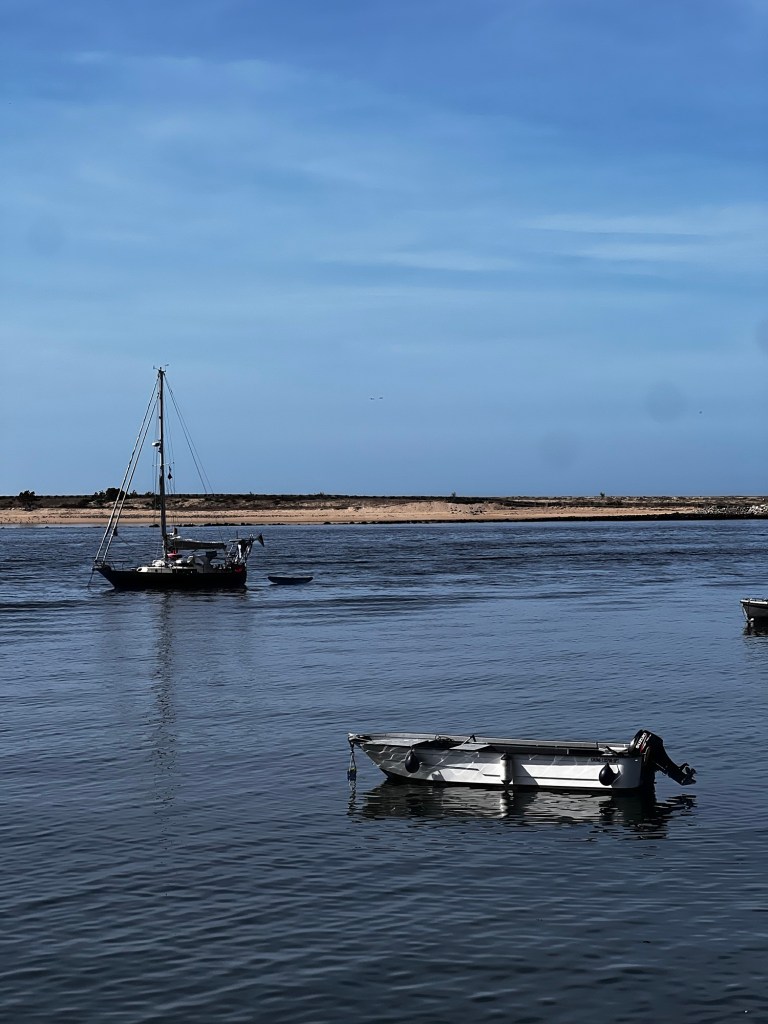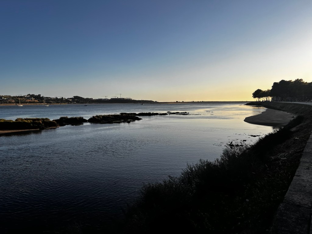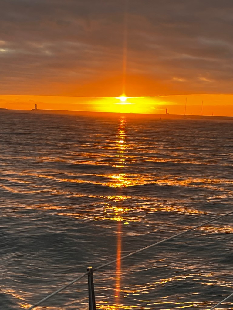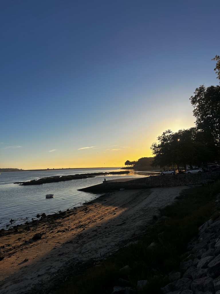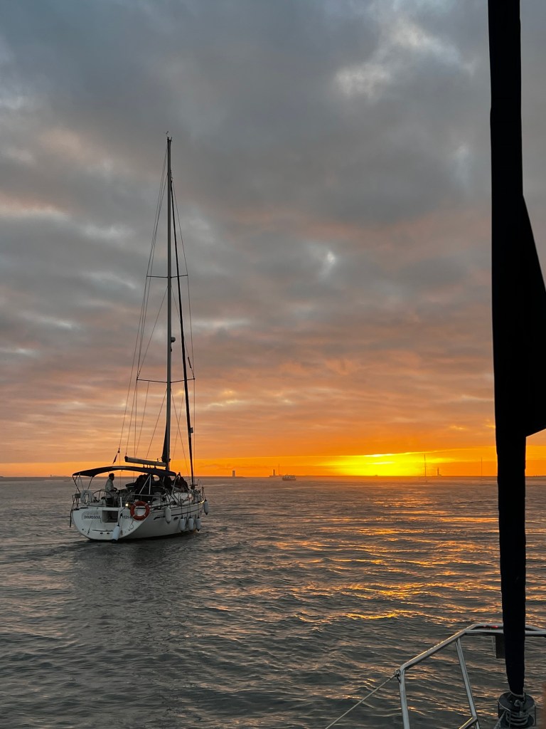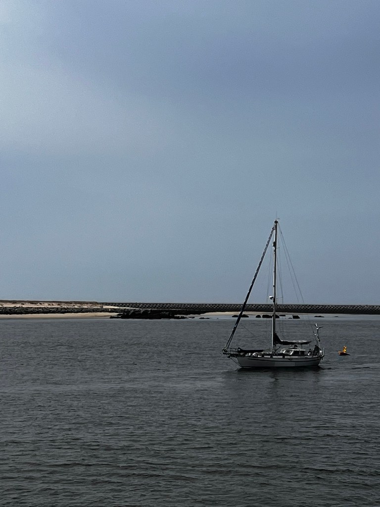 We did end up making it to the marina on time and got on board our sailboat for our river cruise. The cruise was a pleasant experience. The sailboat was funny, it didn’t even have a main and there was no actual sailing to be had. But the cushions were comfortable and the views of the cities from the river were beautiful, and when we turned around to watch the sun go down over the ocean, the clouds parted and we got a pretty awesome sunset.