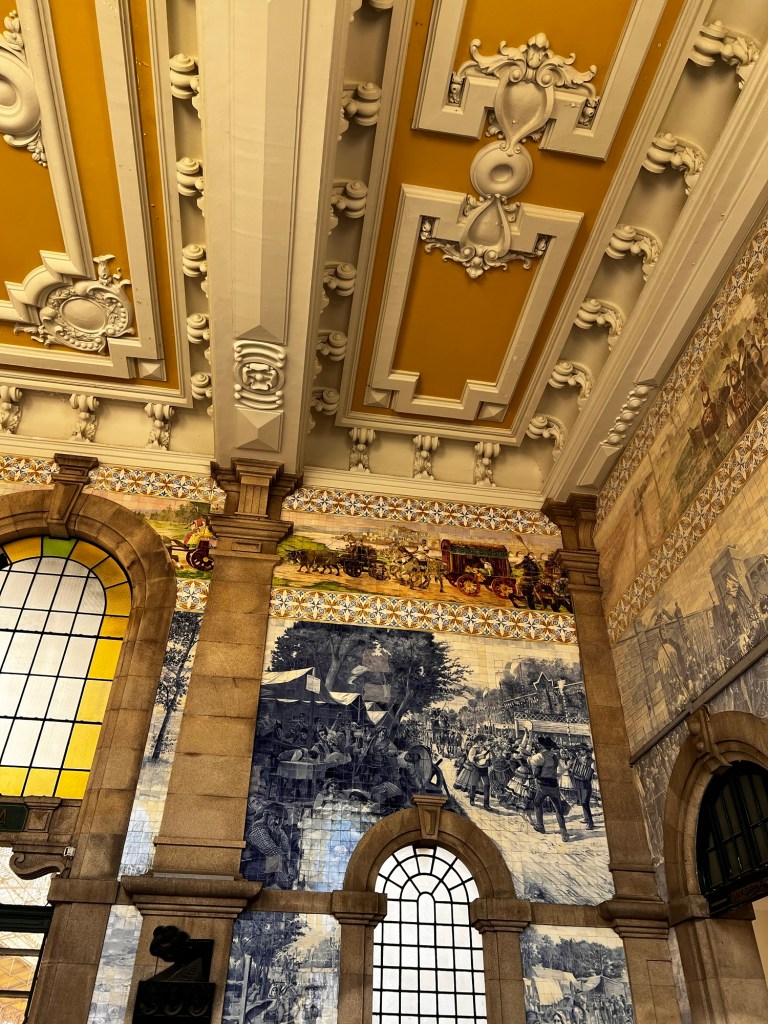We wandered to some of the major points of interest – the Cathedral of Porto, and the train station, near which we had lunch at a restaurant in a square. I had the francesinha – a sandwich with steak, ham, sausage, bread, and covered in cheese and a special sauce. It was DELICIOUS! And I had my first glass of Port wine, too. Also delicious.