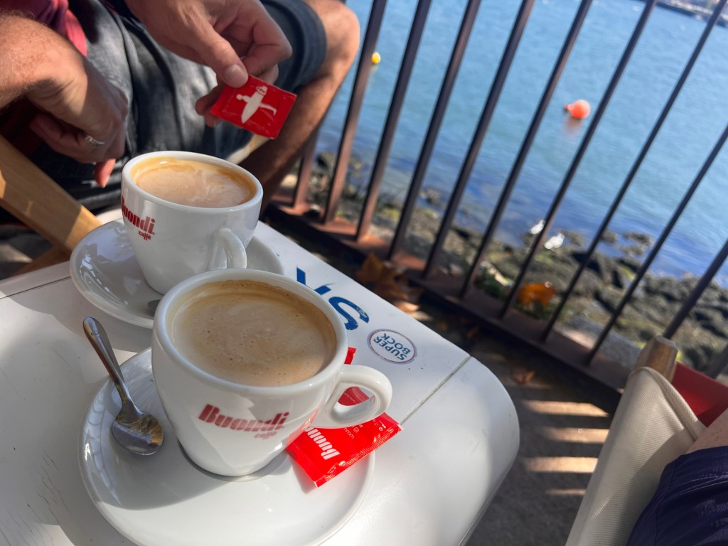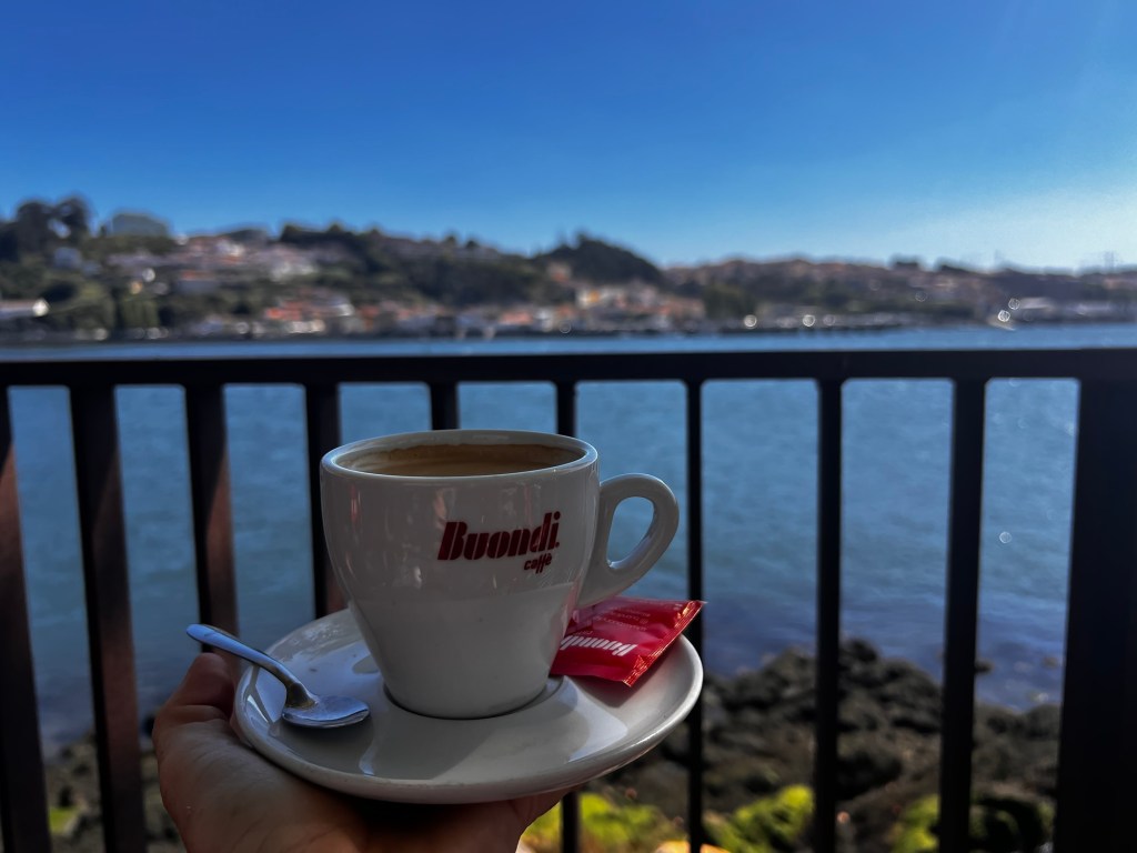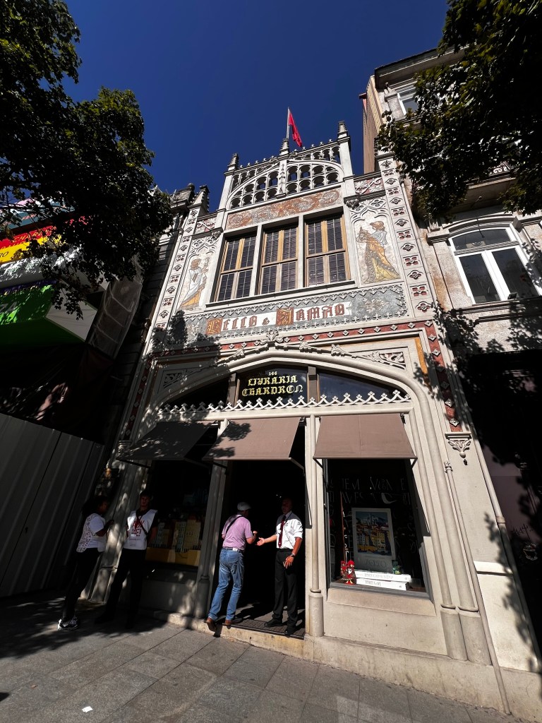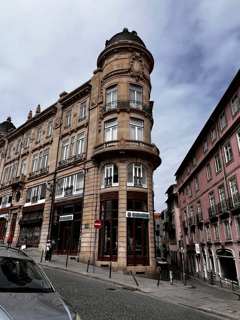 This morning after breakfast, we set out on a walk in a different direction than we’ve walked . We went towards Foz, but took a different street and turned randomly down alleys and found all kinds of cool buildings to look at. We grabbed croissants and espresso from the little grocery by us on our way back and ate them on the balcony.