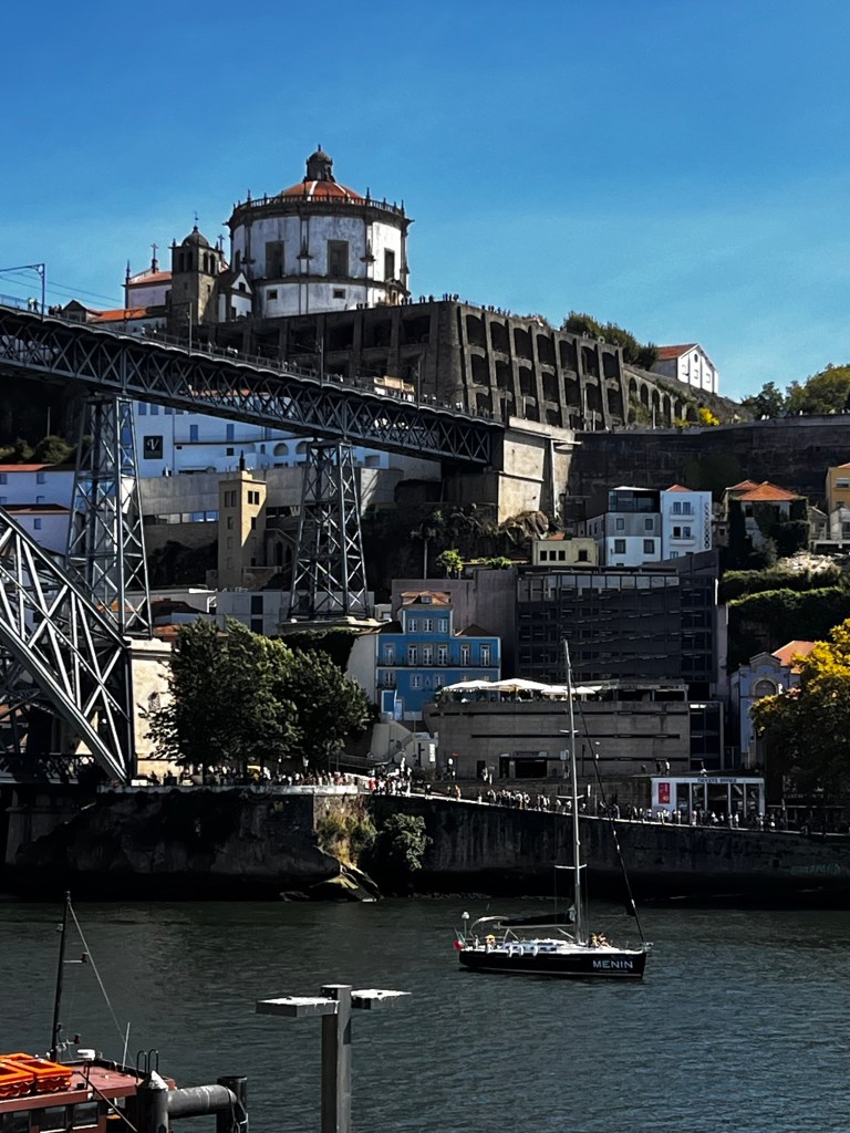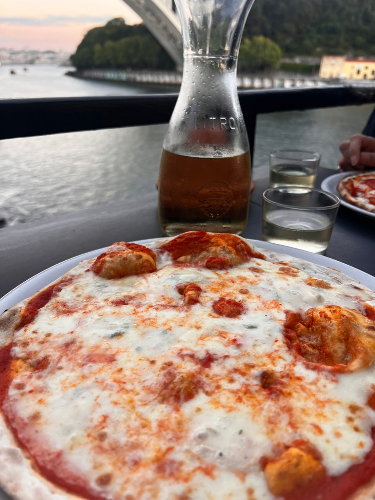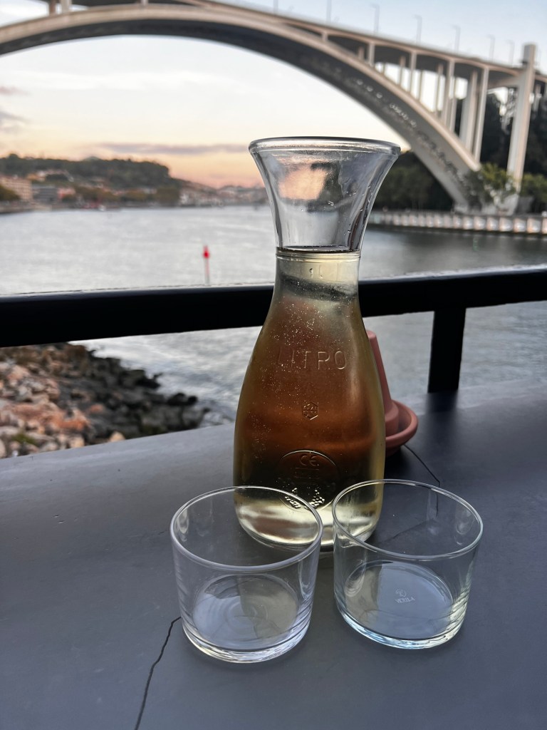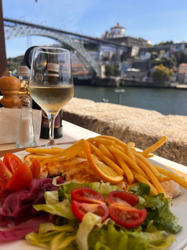 After going back to our room and chilling out for a bit, we got dressed for our afternoon adventure. We grabbed an Uber and went to Ribeira – the area right along the river in the historic district – for lunch. We checked out a few menus and then picked one up a little higher, which had a super cool view of the water and all the boats going by.