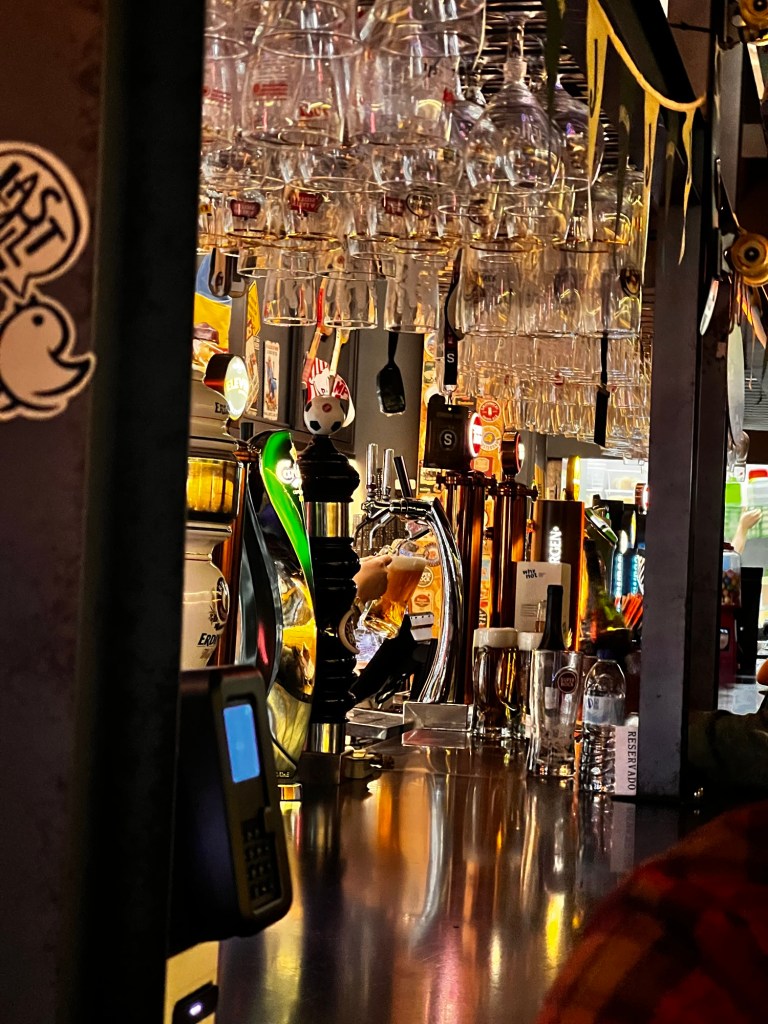 In the afternoon, we had tickets to see the Livaria Lello, the bookstore that supposedly inspired Harry Potter. We had heard the line could take forever, so we headed out early and Ubered downtown. We had a while to kill, so we grabbed lunch and beer at the Cervejaria Clergios while we waited.