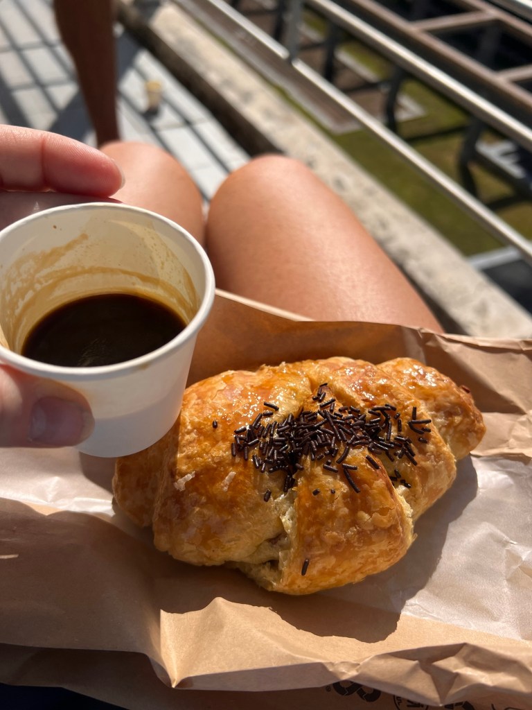 We went back to the room and chilled a bit, then went out for lunch at a spot called MxM. I had a Caesar salad, and it felt good to eat something green for once. Then we got some espressos at the river side vendor and had coffee with a view of the river. Then it was back to the hostel for a bit before dinner.