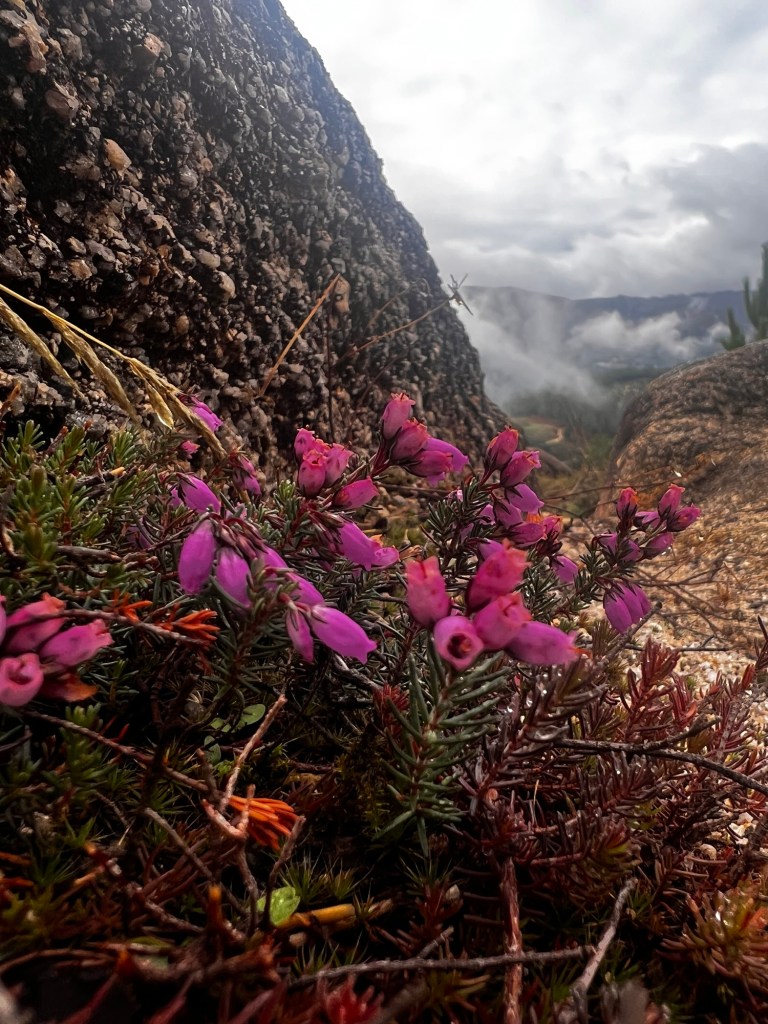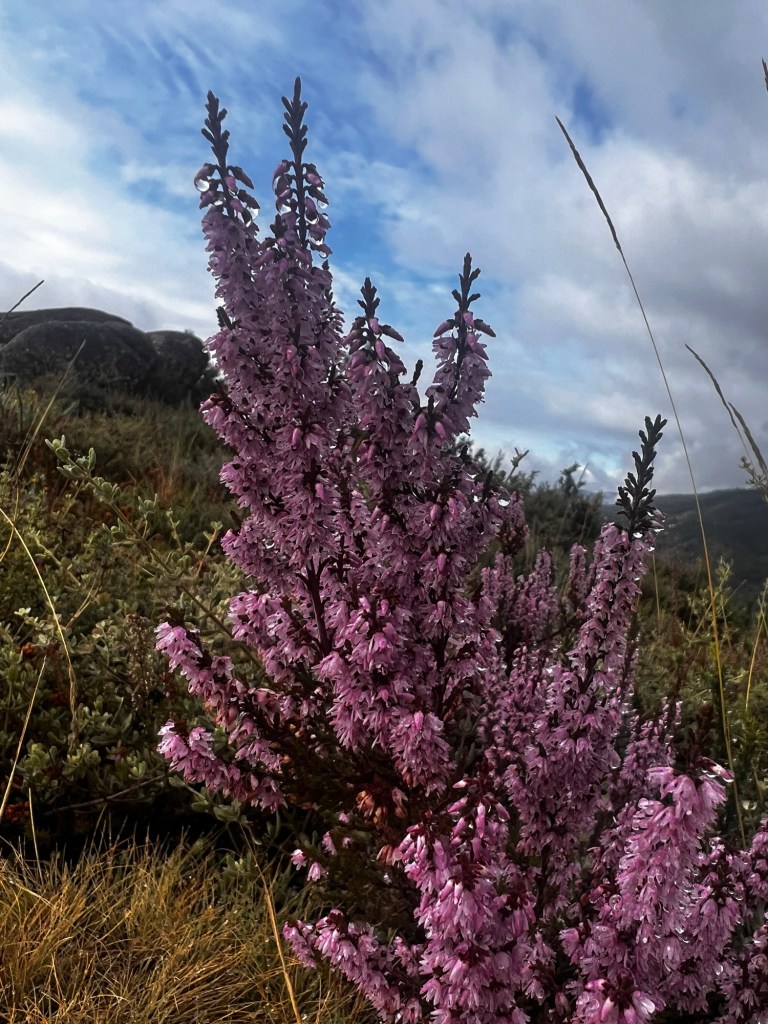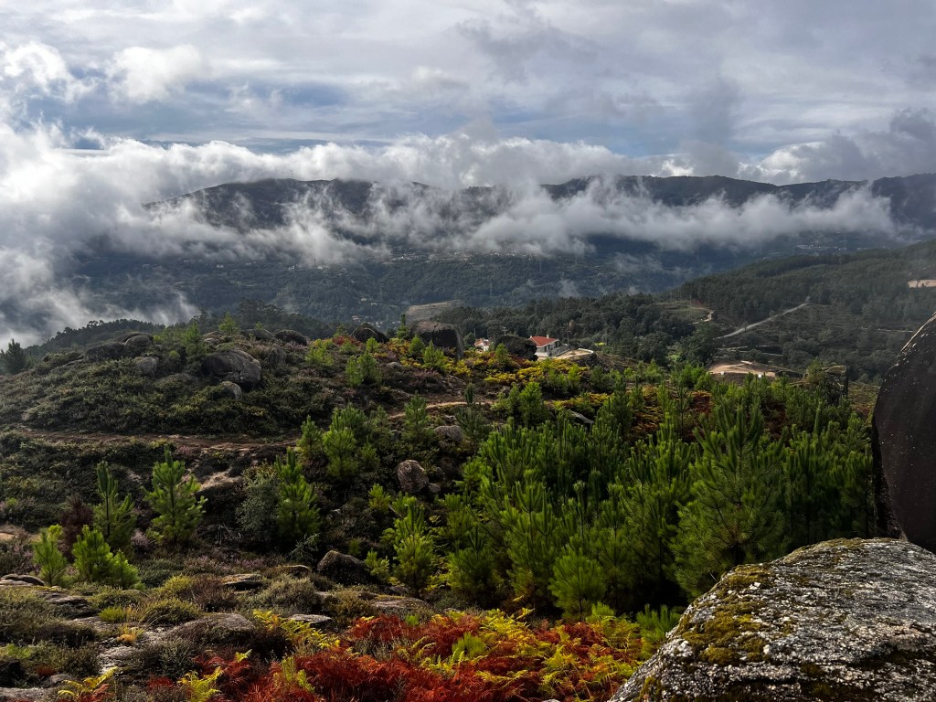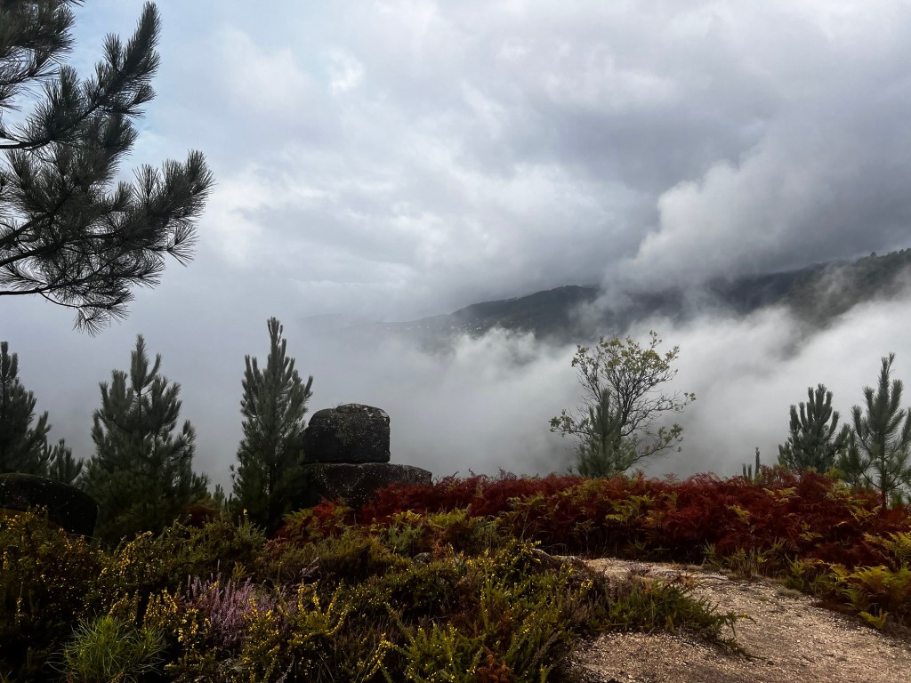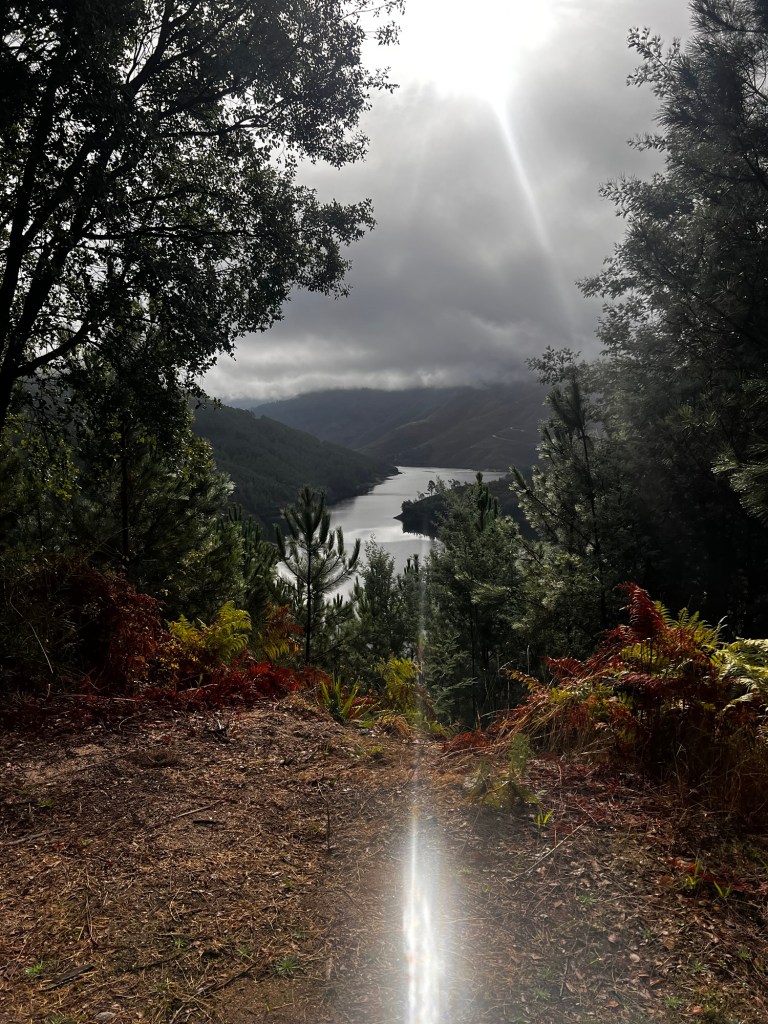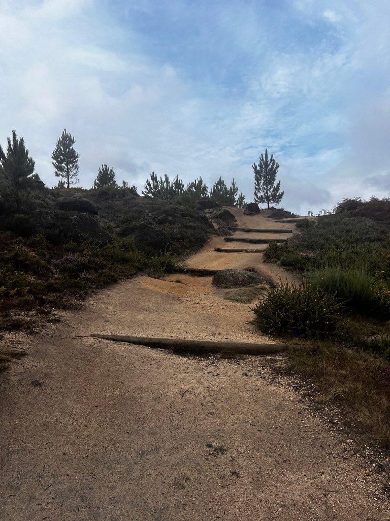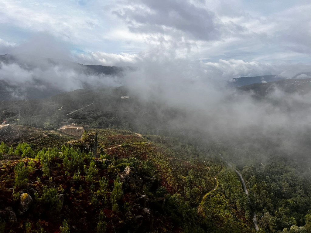 Our first stop was the Miradouro de Fafião. We went down a random road and parked in a little pull off that GoogleMaps directed us to. We walked up the road a tiny bit, and we saw signs for the actual lookout. When we got up to it, there was this metal bridge to a random rock with a viewing platform… I’m sure the bridge was fine, but it sure felt rickety when I walked across it! The view was cool, of a big reservoir down the valley and the mountains all around. The bridge and the rock it connected to was cooler.