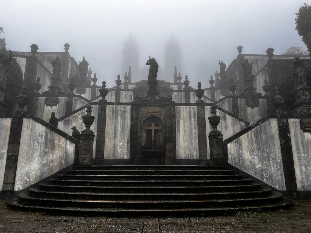We wandered around for a while – the staircase was amazing, and the basilica at the top was beautiful – it’s just too bad that it was foggy as hell and we couldn’t see all of it at once. Being up in the clouds was cool, but it might’ve been cooler if we could see it all at once. Regardless, it wasn’t too disappointing, and really neat to see. We got back in the car and continued on to Braga.